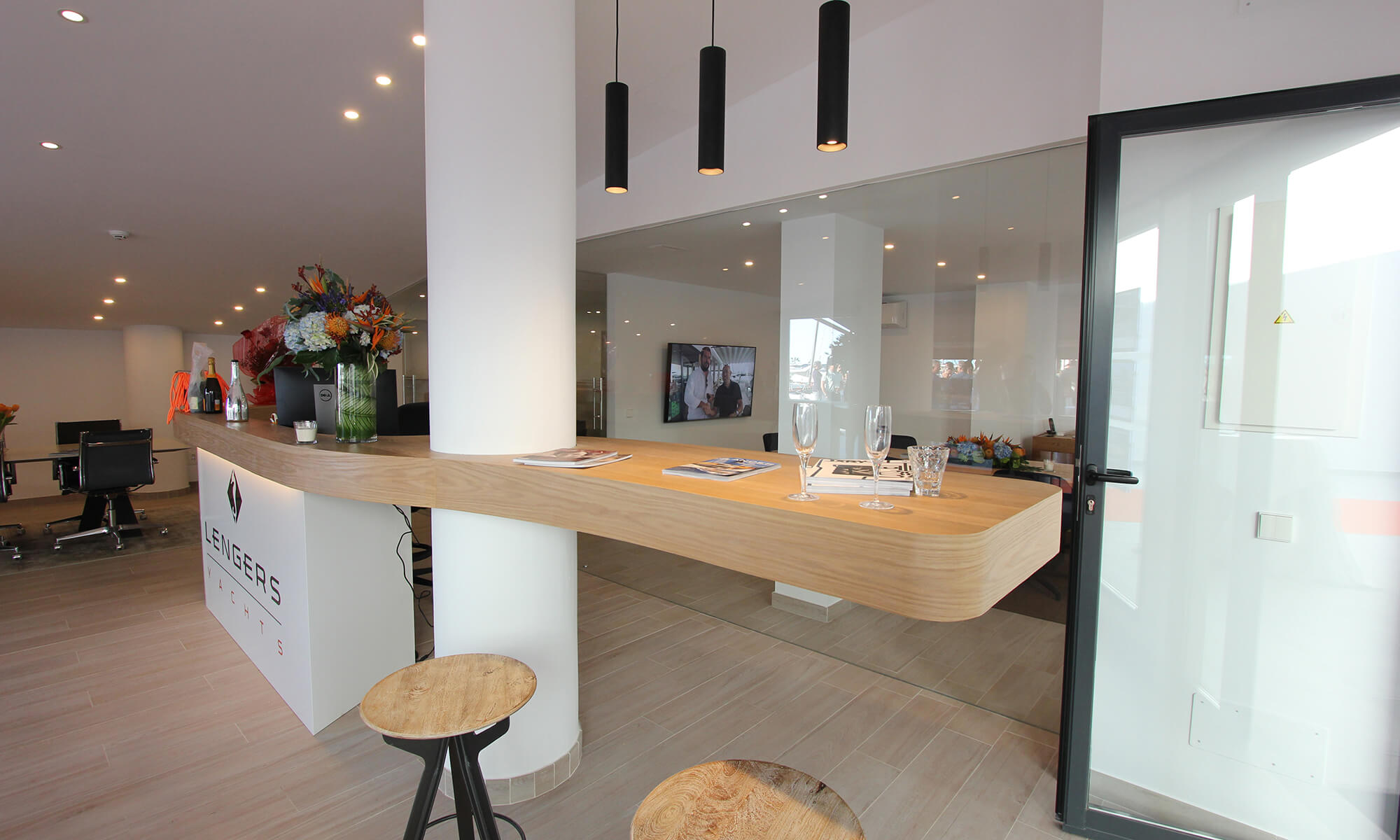 El pasado 26 de abril hemos tenido el placer de asistir a la inauguración de la nueva oficina de Lengers Yachts en Port Calanova, Calvia, Mallorca. Nuestro estudio ha diseñado el interior de la oficina con escritorio frontal hecho a medida.