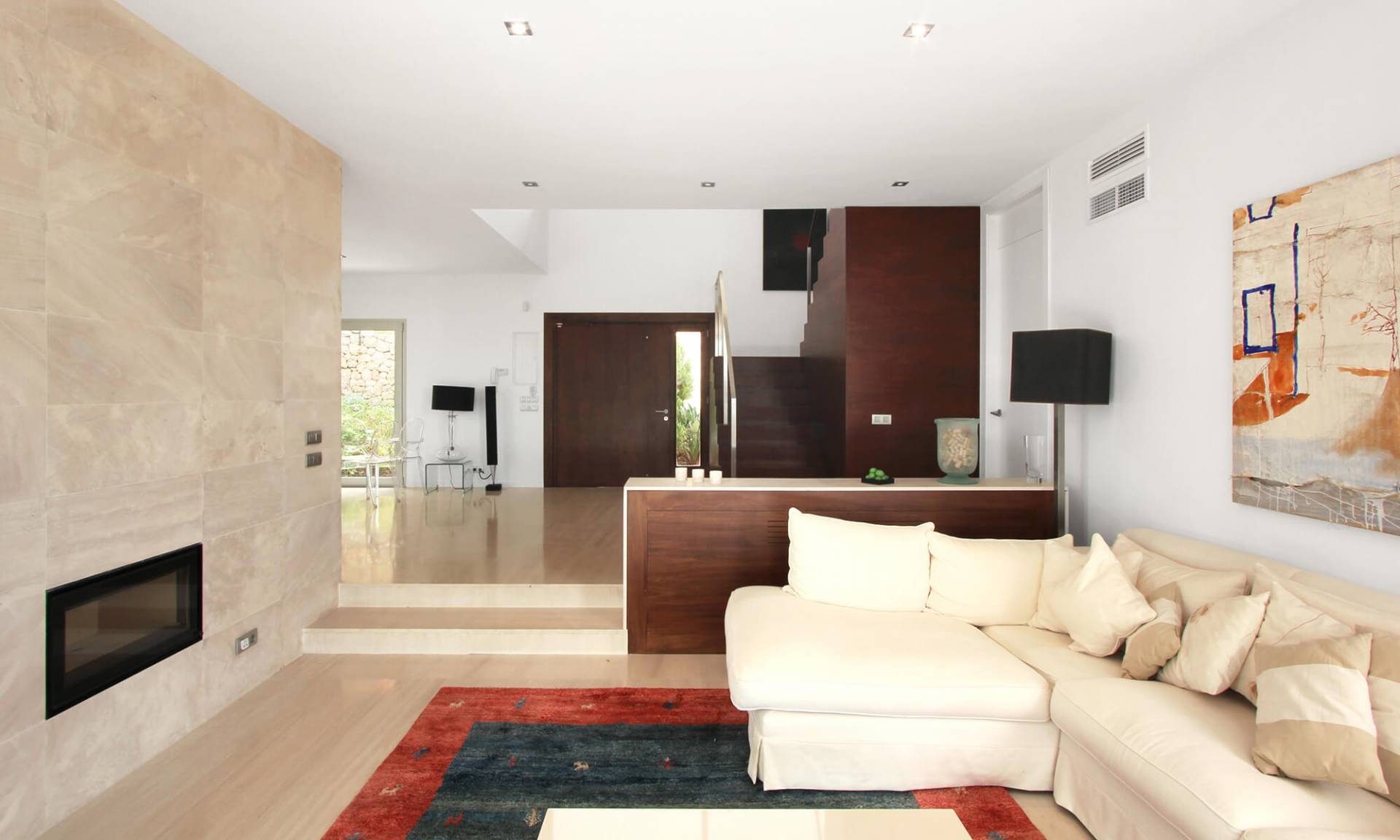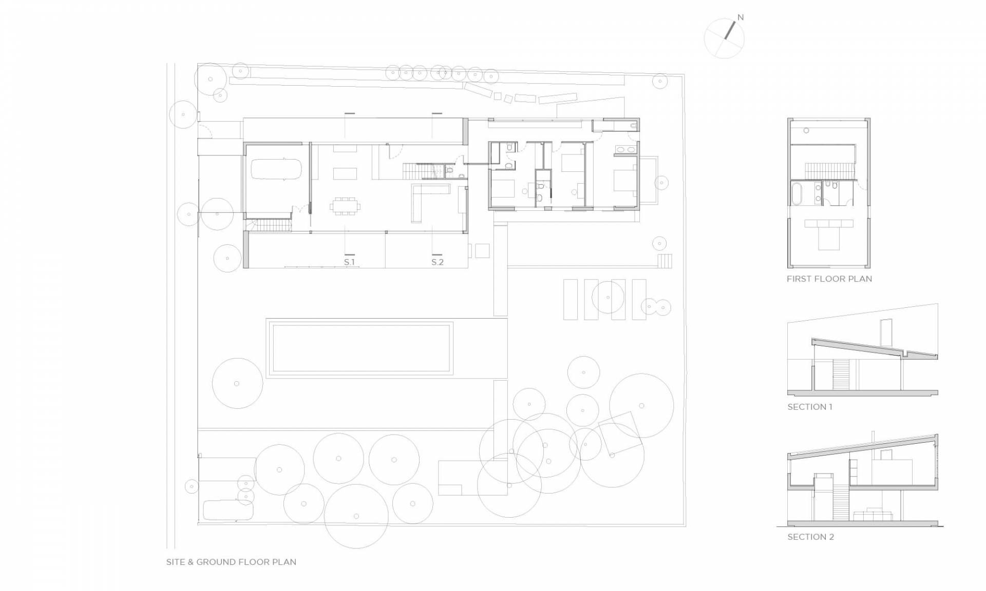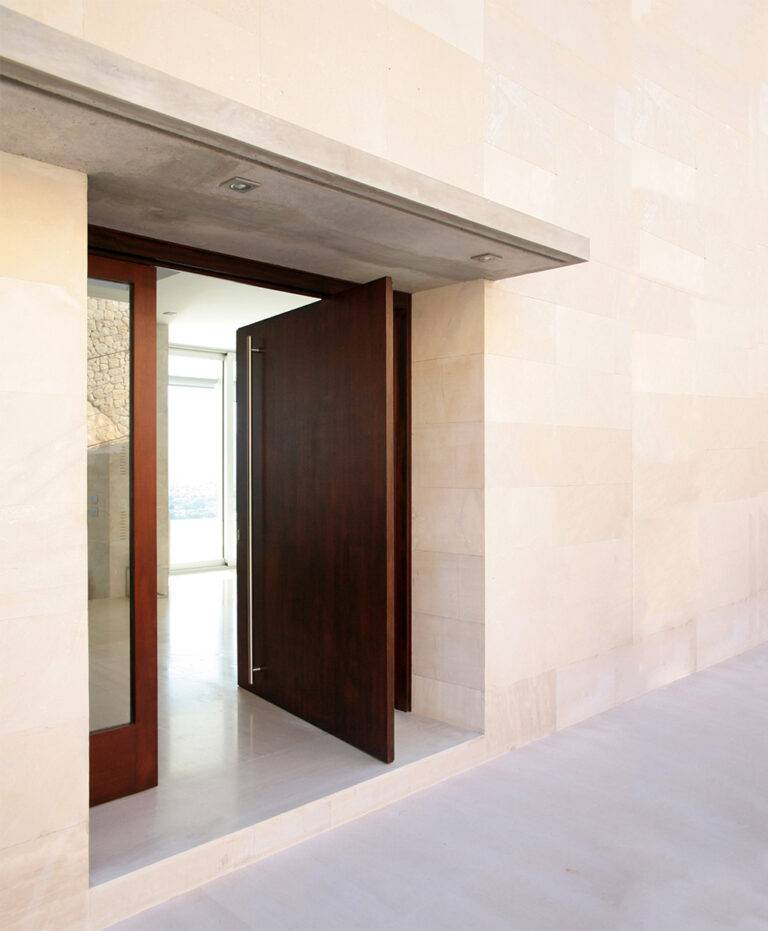La vivienda se sitúa en un solar privilegiado, con magnificas vistas y orientación sur. El diseño busca replantear las formas sencillas de la arquitectura vernácula. Se intenta minimizar la cantidad de materiales para los acabados, piedra arenisca para revestimientos exteriores y solados de planta baja, carpintería de aluminio anodizado gris, paredes y techos interiores pintados de blanco. En el hall de entrada aparece de manera escultórica la escalera, revestida de madera, que invita a subir a la planta piso donde se sitúan los dormitorios.
