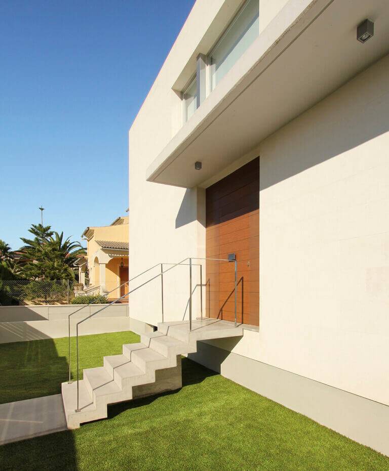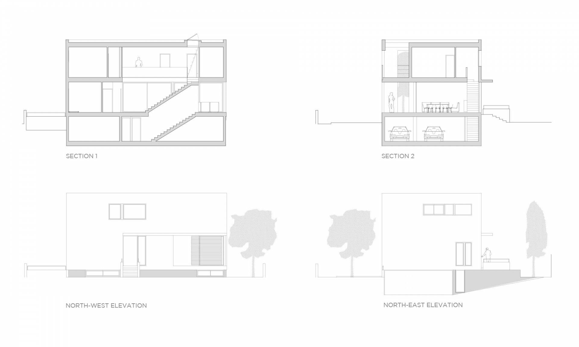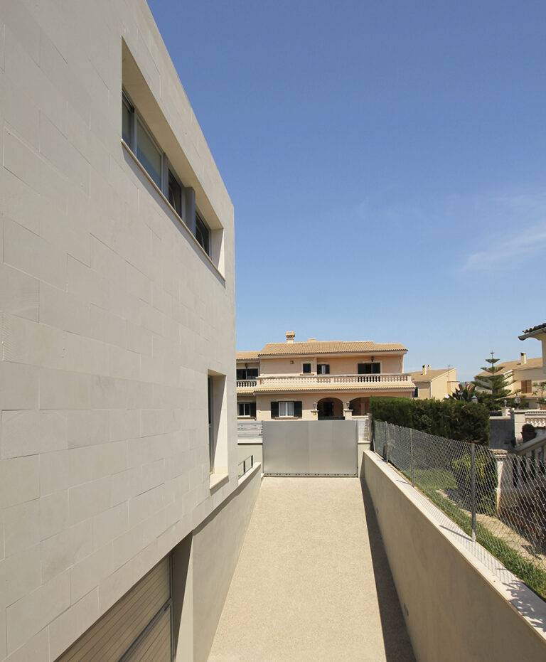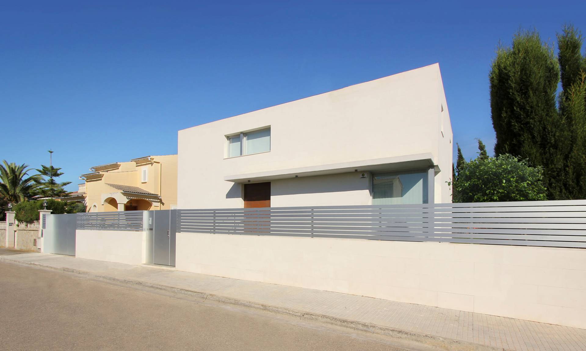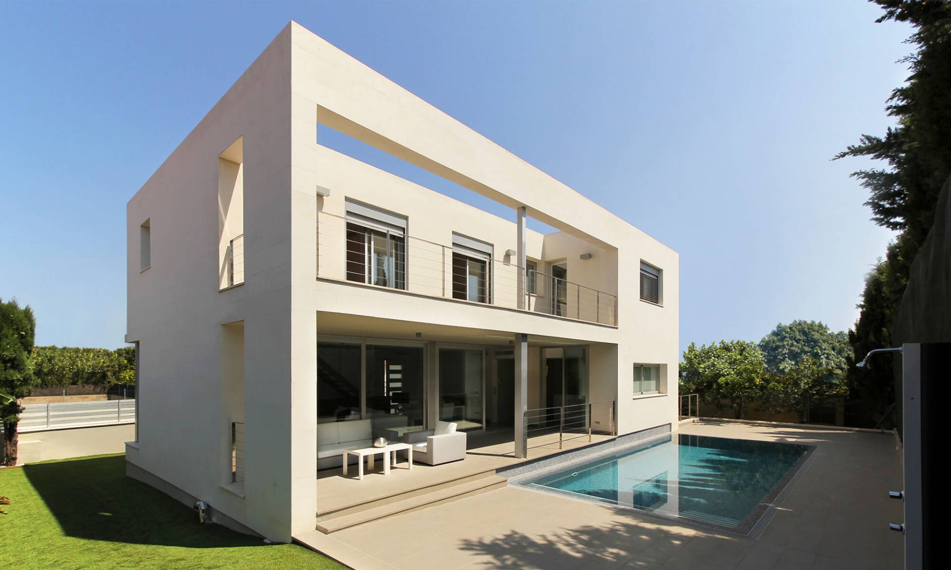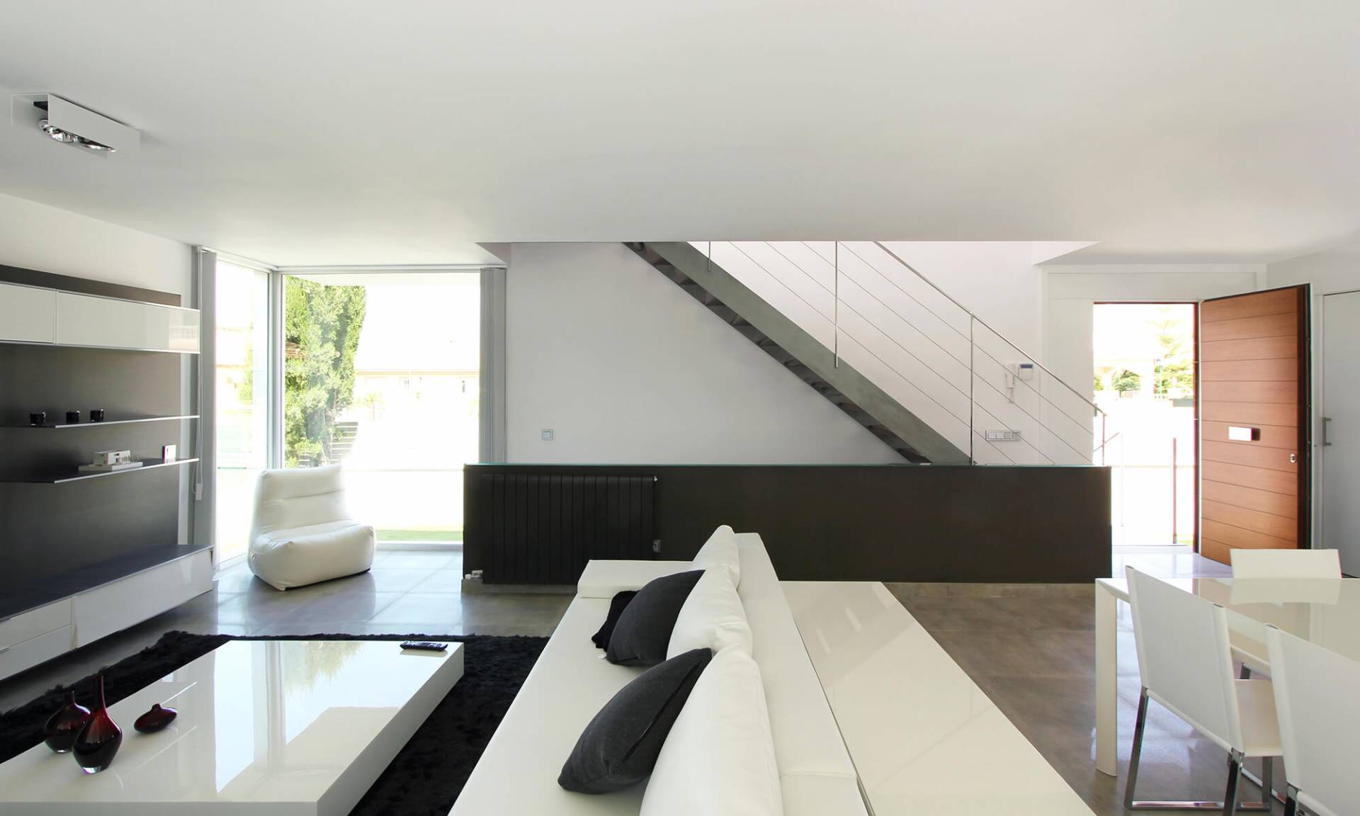 En un barrio residencial de baja densidad, se sitúa esta vivienda unifamiliar aislada. El solar dispone de buena orientación, permitiendo situar hacia el sur la mayoría de estancias de la casa.El edificio se adapta al terreno elevándose lo necesario para poder situar la rampa de acceso al garaje de planta sótano.La fachada principal se separa de la alineación a vial creando un jardín de entrada, que actúa de filtro de lo público a lo más privado.En planta baja se sitúan la cocina y el estar-comedor, orientados a sur y abiertos al jardín. Una escalera ligera, integrada en el espacio de estar-comedor accede a la planta piso donde están los dormitorios.
