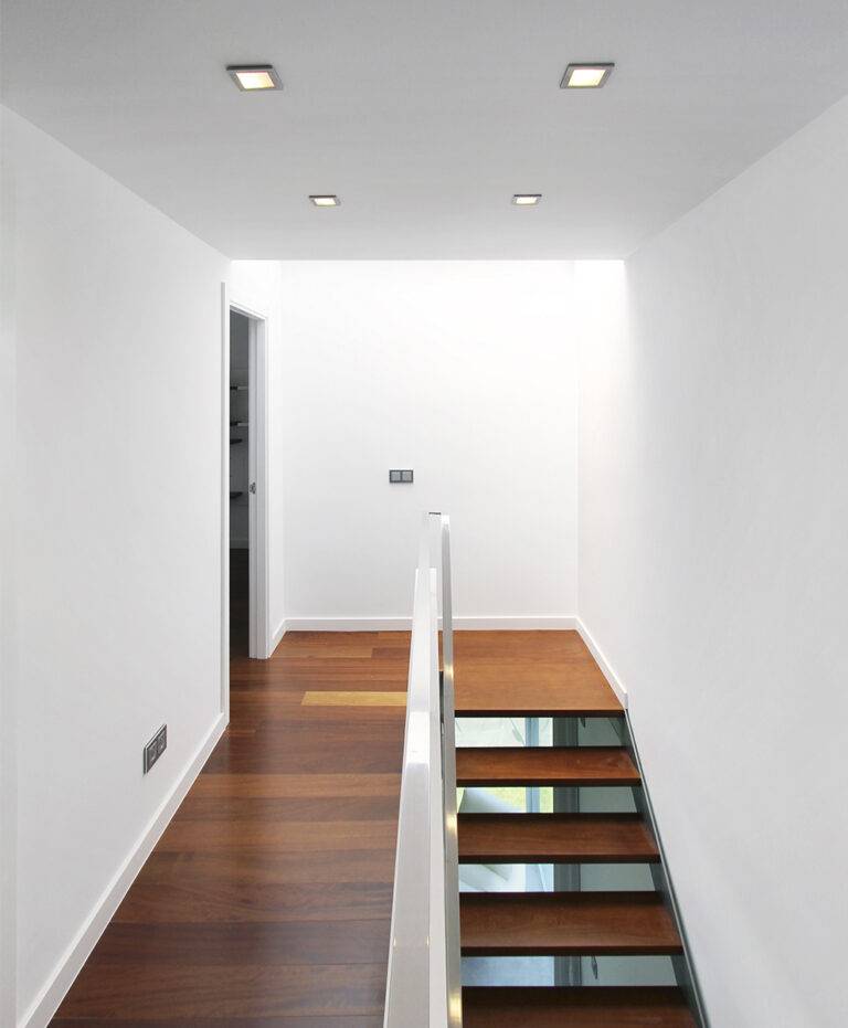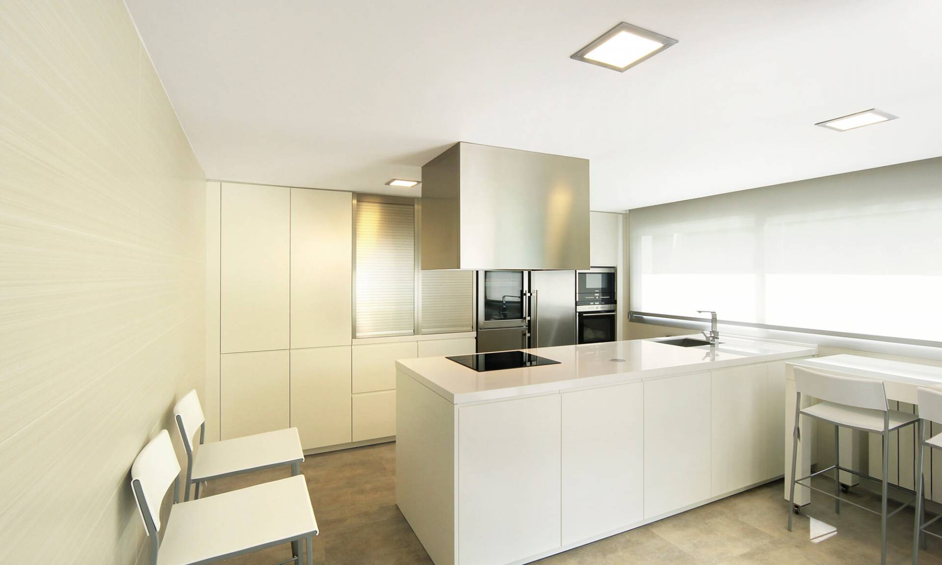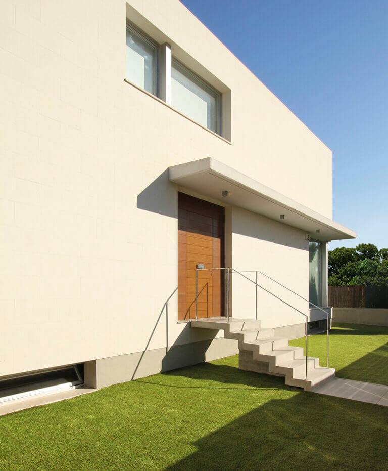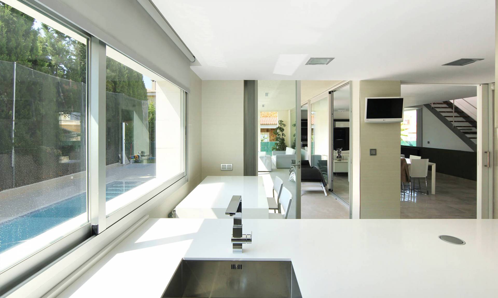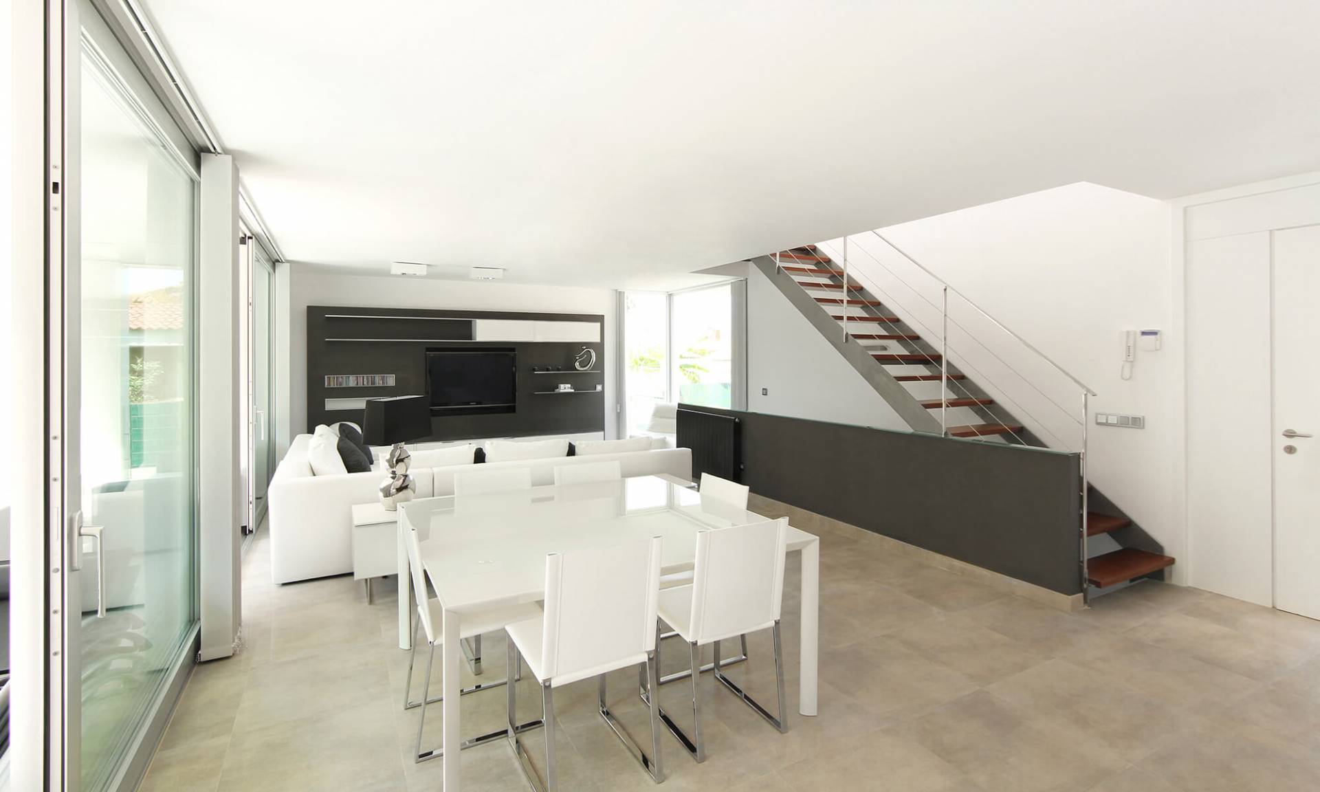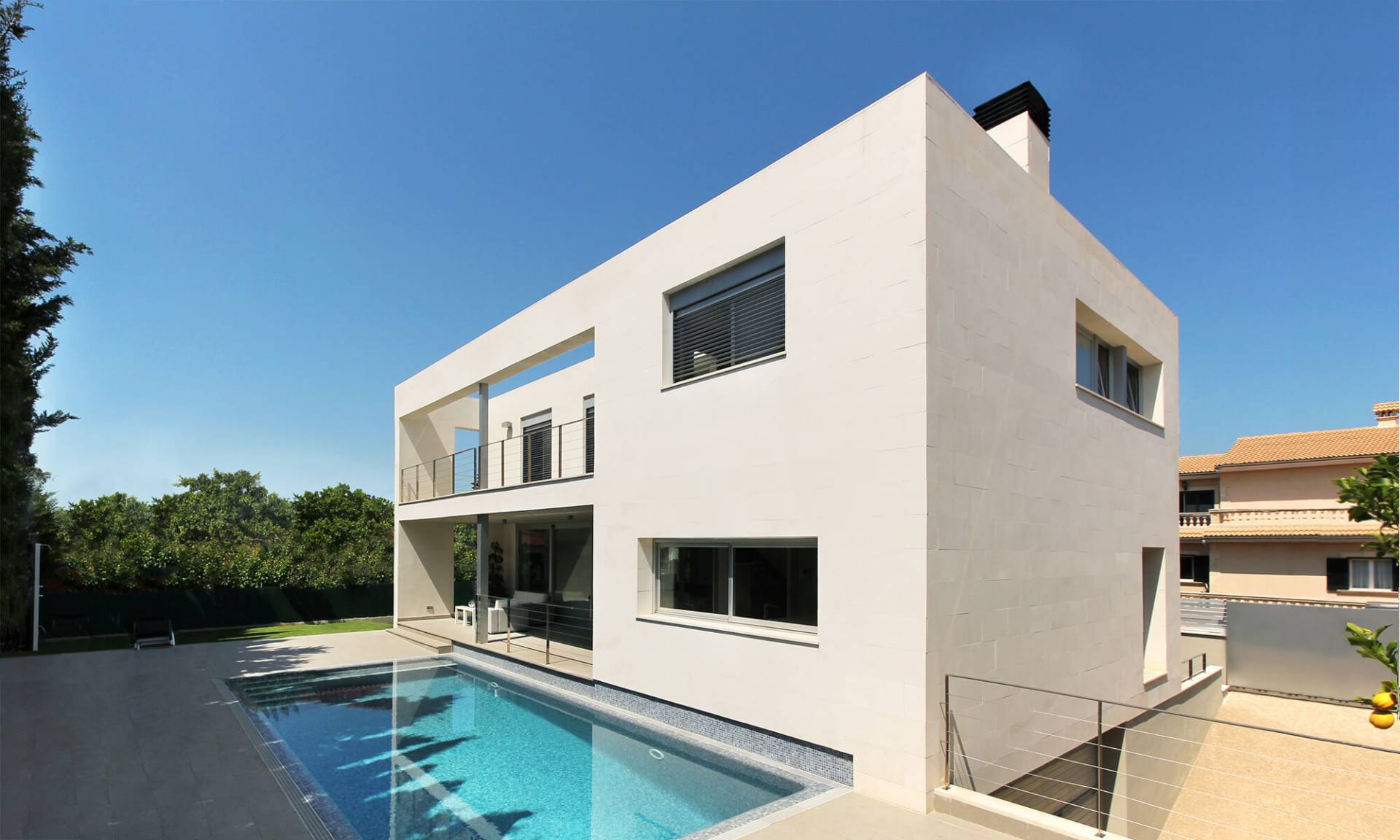 En un barrio residencial de baja densidad, se sitúa esta vivienda unifamiliar aislada. El solar dispone de buena orientación, permitiendo situar hacia el sur la mayoría de estancias de la casa.El edificio se adapta al terreno elevándose lo necesario para poder situar la rampa de acceso al garaje de planta sótano.La fachada principal se separa de la alineación a vial creando un jardín de entrada, que actúa de filtro de lo público a lo más privado.En planta baja se sitúan la cocina y el estar-comedor, orientados a sur y abiertos al jardín. Una escalera ligera, integrada en el espacio de estar-comedor accede a la planta piso donde están los dormitorios.