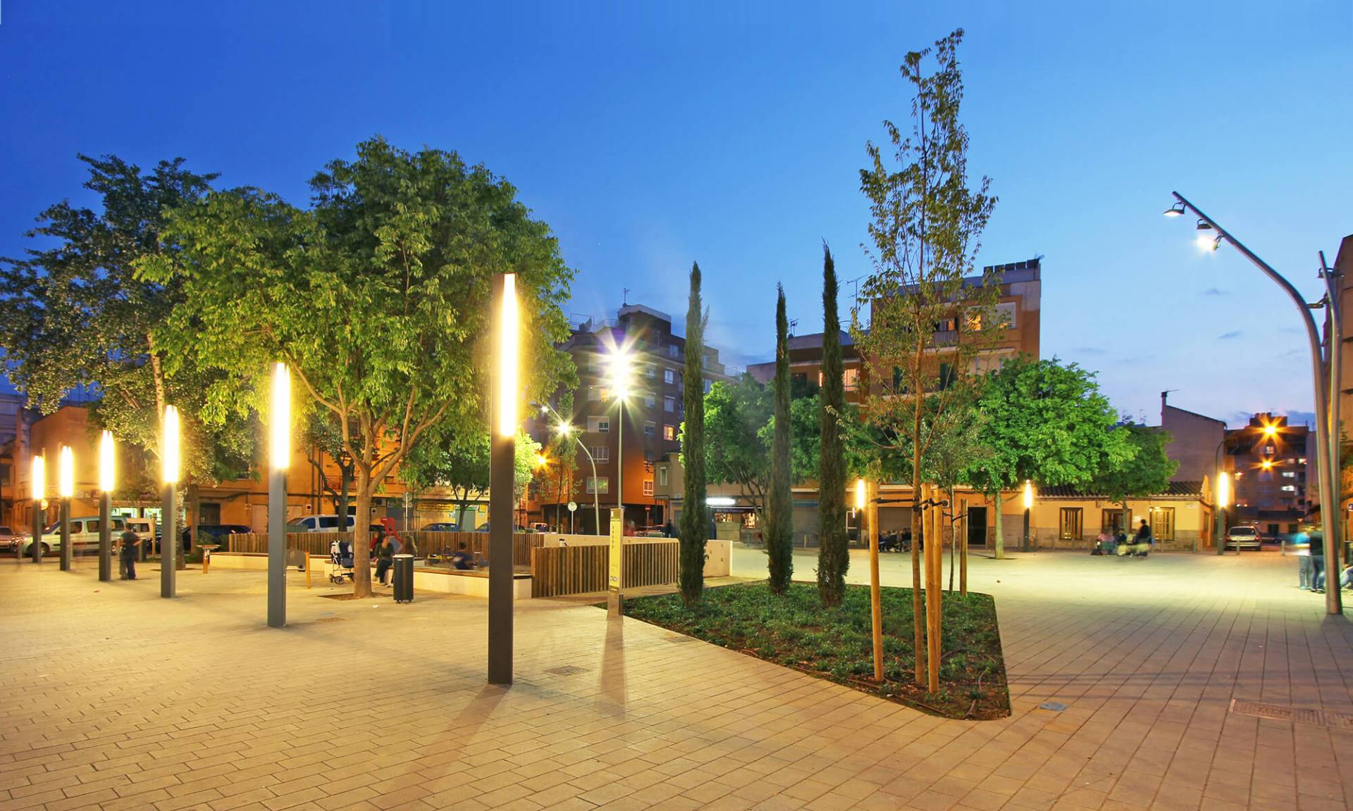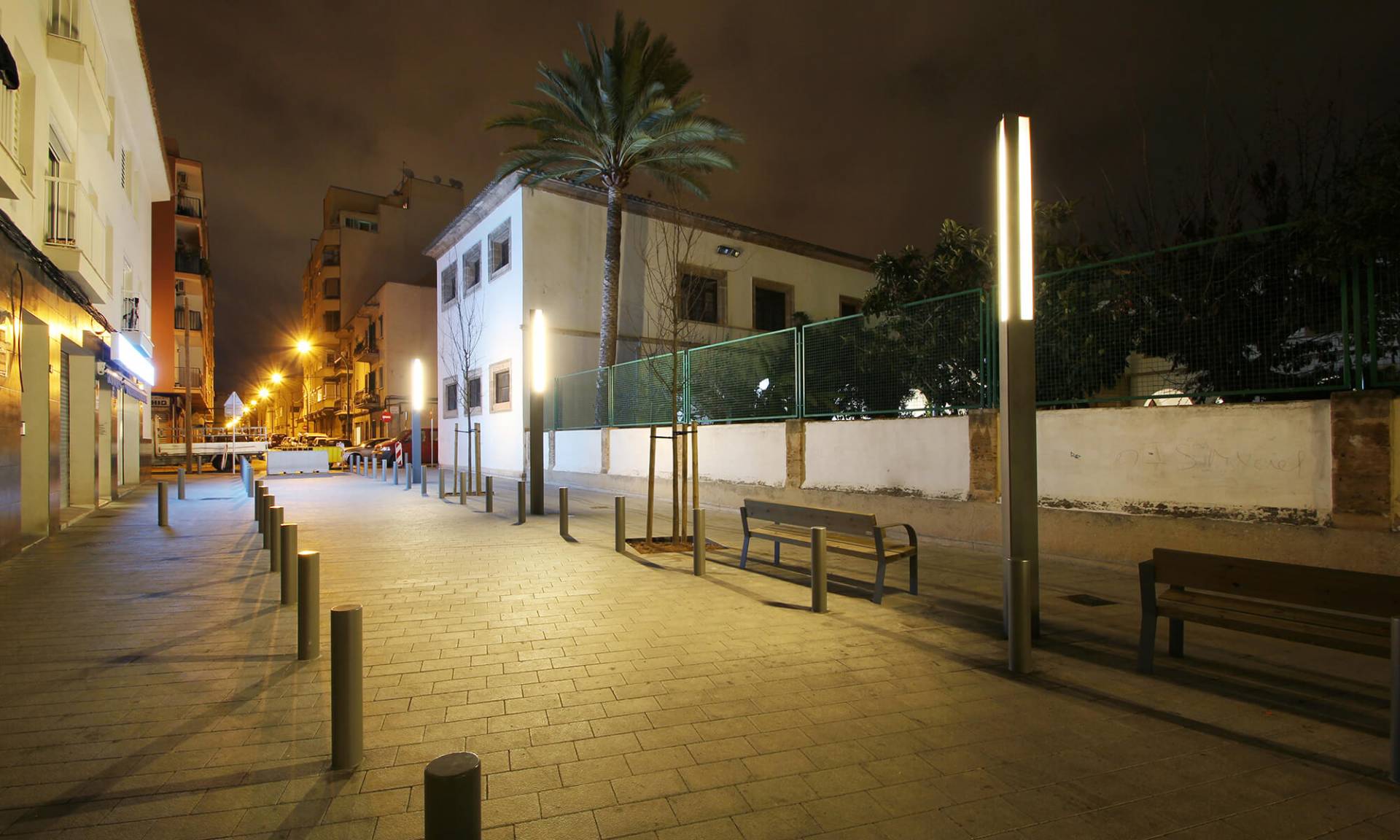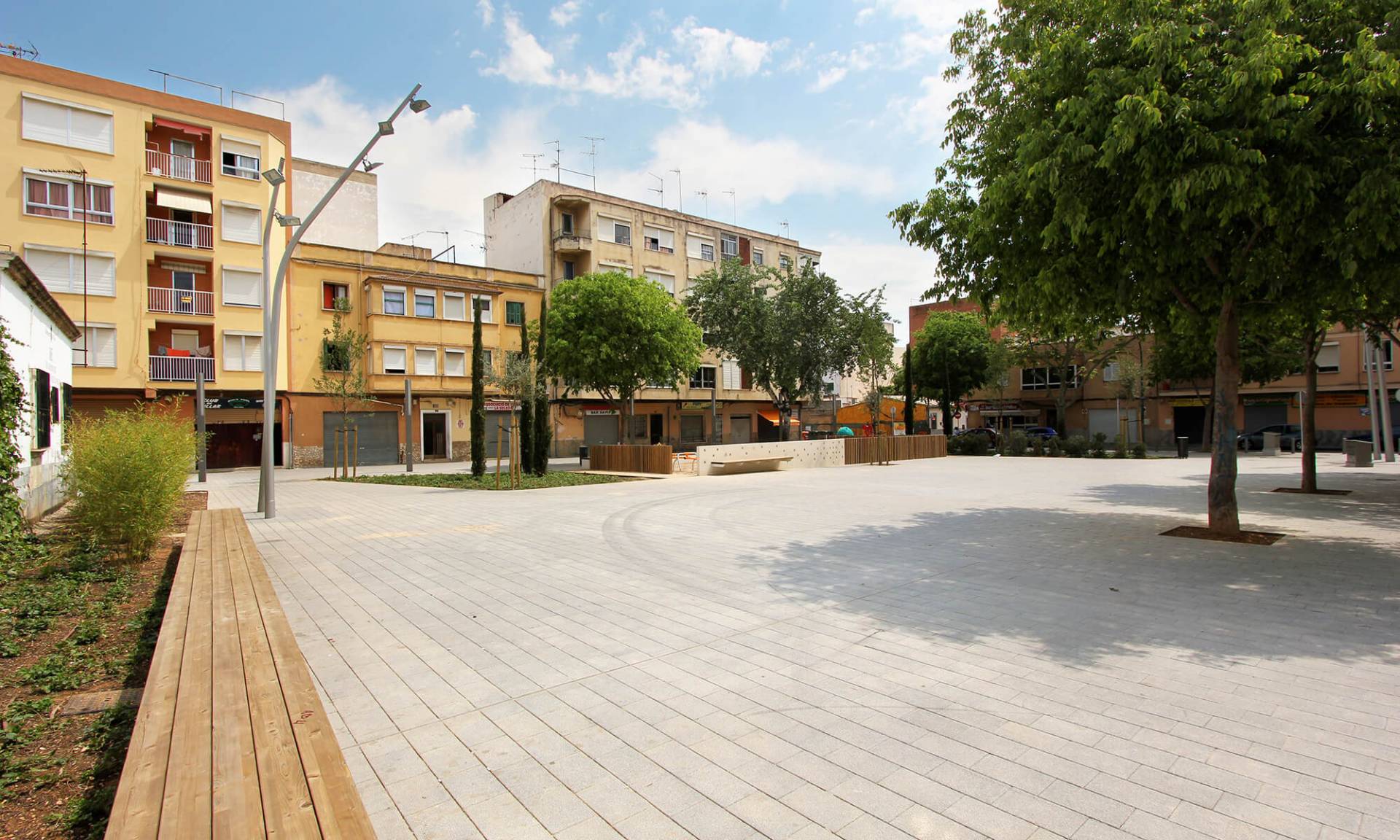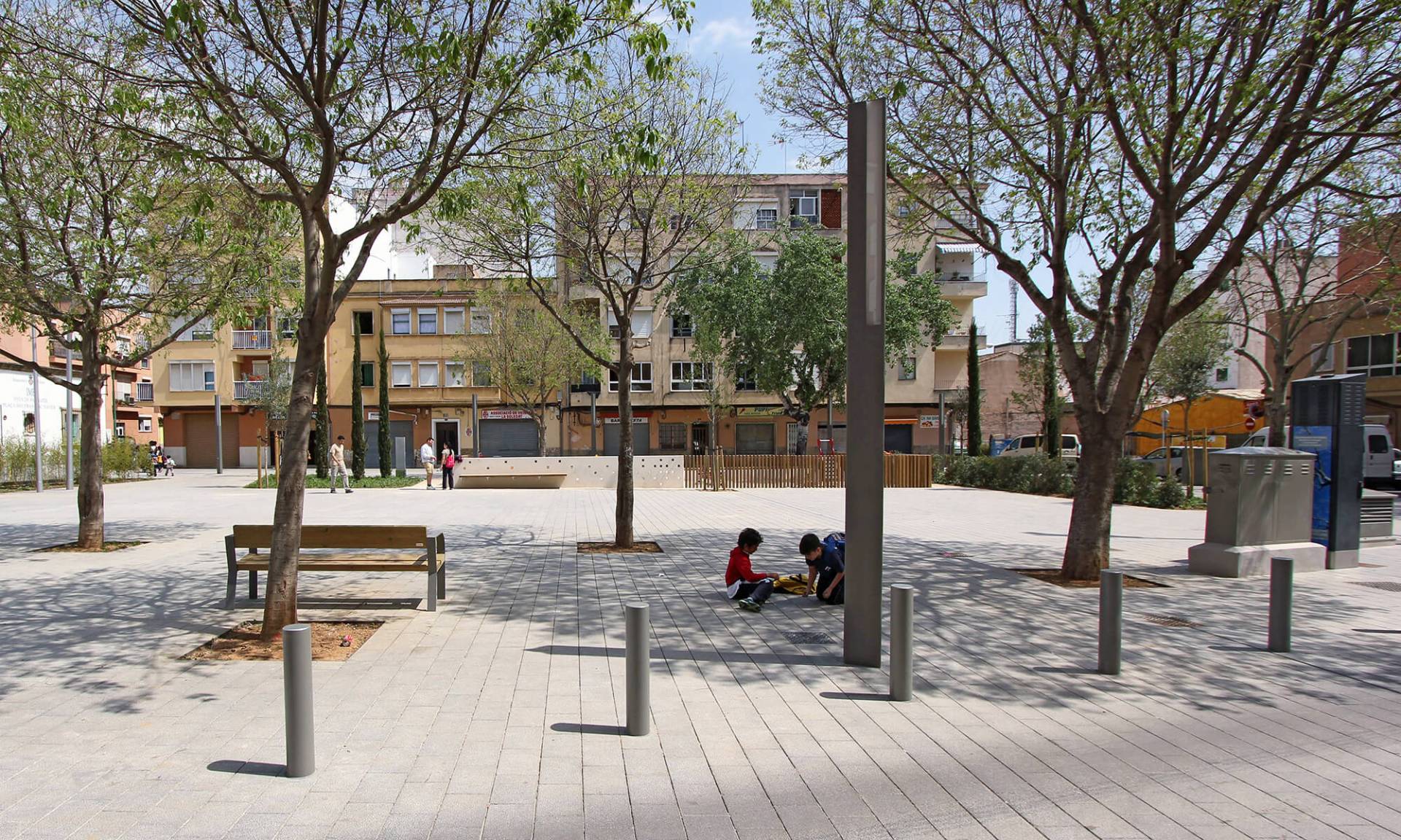 En el barrio de la Soledat Nord, con déficit de espacios públicos, nace la propuesta que busca la dignificación de un ámbito urbano malogrado, pavimentando la calle de donde se accede a la escuela vecina y el resto de calles alrededor de la plaza, consiguiendo una sensación de nitidez y amplitud de espacio. Se eliminan así las barreras existentes entre las fachadas de la plaza y el espacio público, permitiendo que varios usos puedan participar de este nuevo espacio con actividades al aire libre. El espacio principal es de forma trapezoidal, con una suave pendiente orientada hacia el sur, donde el edificio de la escuela de comienzo del siglo XX y con alto valor arquitectónico, constituye una referencia en la zona.